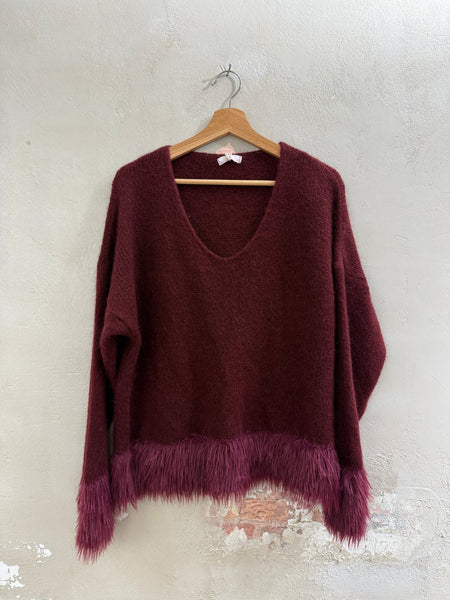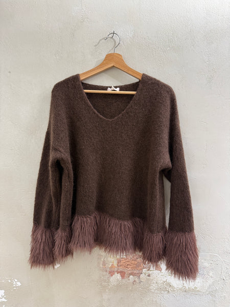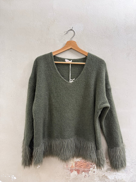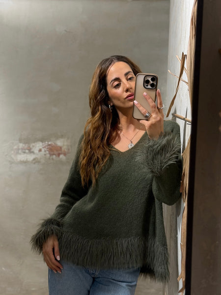 Kuschelig weich, modern und mit besonderem Twist – dieser Pullover überzeugt durch seine dekorativen Fransenabschlüsse an Saum und Ärmeln. Der feminine V-Ausschnitt sorgt für eine schmeichelhafte Silhouette, während das lässige Design ihn zum perfekten Begleiter für Alltag und Freizeit macht.