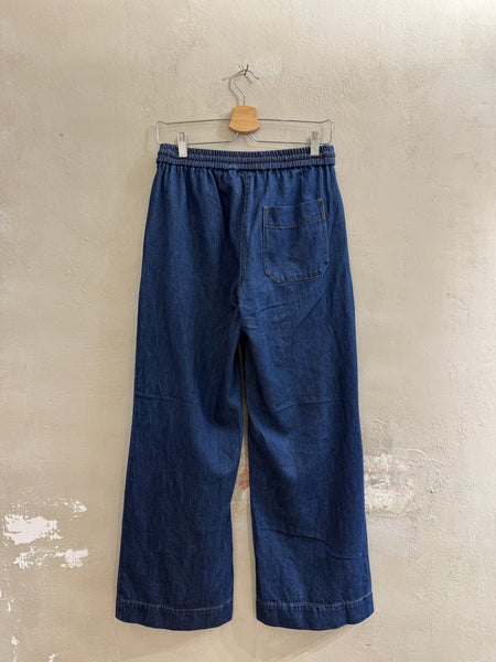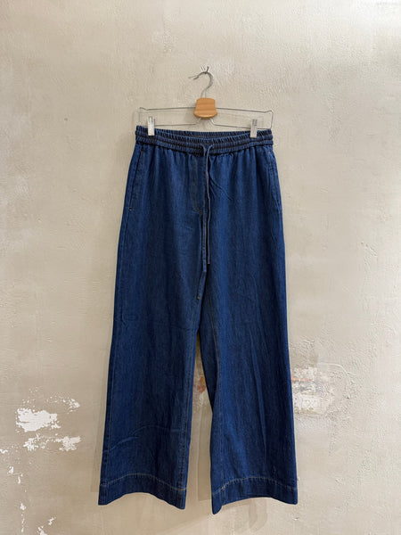 Lässige Jeanshose von Masai mit weitem, fließendem Bein und elastischem Bund mit Kordelzug. Die weiche Denim-Qualität sorgt für hohen Tragekomfort und Bewegungsfreiheit. Eine entspannte Passform, die sich vielseitig kombinieren lässt – von casual bis chic.