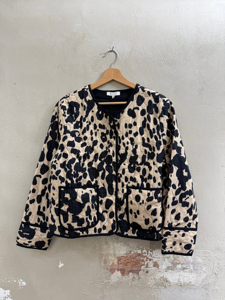 Gesteppten Jacke von Masai mit markantem Leopardenmuster und dezenten Goldfäden für eine elegante Note. Die klaren Linien und praktischen Taschen machen sie zum stilvollen Statement-Piece – lässig offen getragen oder geschlossen für einen strukturierten Look.