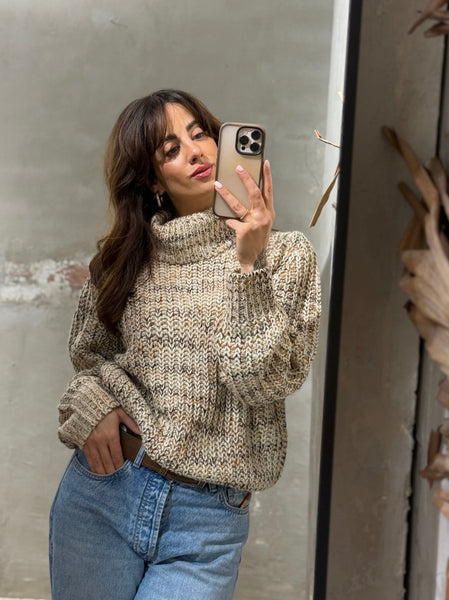 Kuscheliger Rollkragenpullover von Red Button im melierten Sandton. Weich, warm und vielseitig kombinierbar – perfekt für entspannte Alltagslooks.