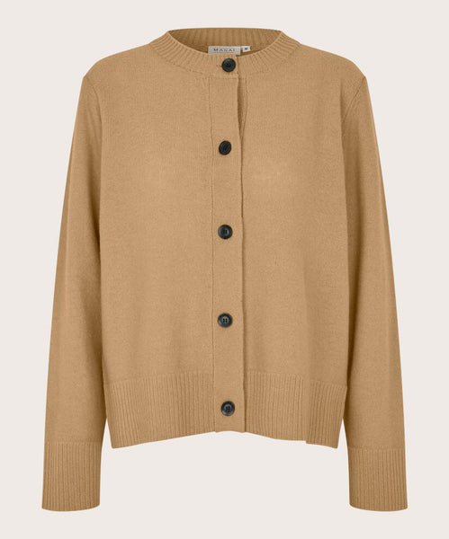 Cardigan aus weicher Wolle mit Kaschmir-Feeling – so bequem, dass du ihn täglich tragen möchtest. Das zeitlose Design mit schwarzen Knöpfen und Rundhalsausschnitt lässt sich vielseitig kombinieren. Schmale Ärmel sorgen für eine feminine Note, der gerade Schnitt für Komfort. Perfekt über Kleid, Tunika oder Top.