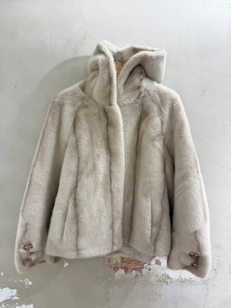 Diese luxuriös weiche Kunstfelljacke bringt Eleganz und Wärme mühelos zusammen. Die voluminöse Kapuze, die fein ausgearbeiteten Nähte und die edlen, goldverzierten Ärmelknöpfe machen sie zu einem echten Lieblingsstück – ob für den Alltag oder für besondere Anlässe.