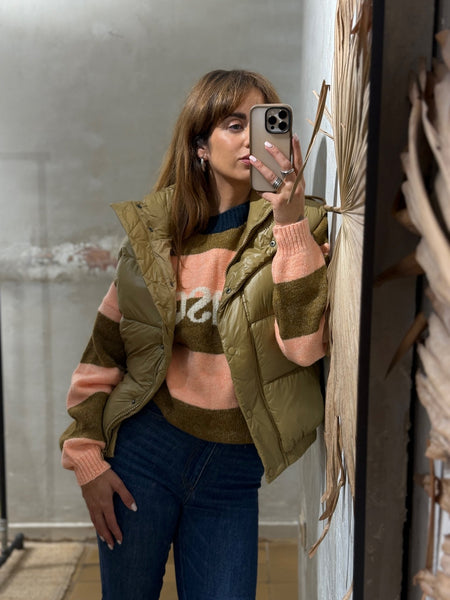 Ein Lieblingsstück für entspannte Looks: Der Strickpullover von SENSES THE LABEL überzeugt mit seinem markanten Streifenmuster in Peach Nectar und Light Cognac. Das Intarsia-Wording auf der Vorderseite setzt einen sportiv-eleganten Akzent, während die weiche Haptik und der lockere Oversized Fit für maximalen Komfort sorgen. Ob lässig zu Denim oder chic kombiniert mit Hosen in den Streifenfarben – dieser Pullover ist ein echtes Styling-Highlight.