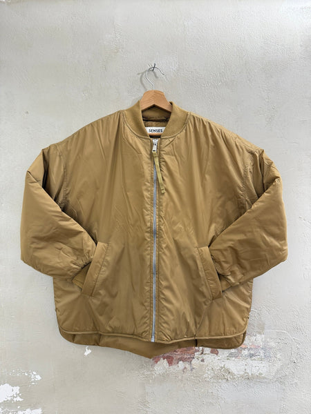 Der Klassiker neu interpretiert: Der oversized Blouson von SENSES.THE LABEL bringt den Fliegerjacken-Look ins Jetzt. Ohne Saumbündchen, dafür mit cleanem Schnitt, Rippkragen, elastischen Ärmelbündchen und Reißverschluss – perfekt zu Hosen, Röcken oder Denim.
